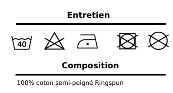 Tee-shirt unisexe col rond. Coupe moderne. Finition bord côte. Bande de propreté au col. Manches courtes. Tubulaire. Composition 100% coton semi-peigné Ringspun.