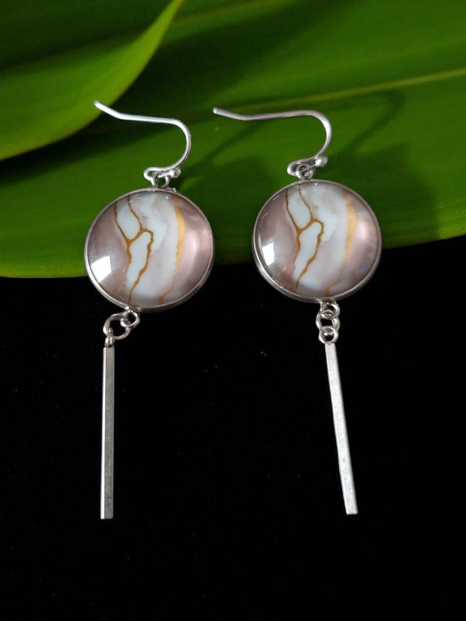 boucle d'oreille pendante avec cabochon.